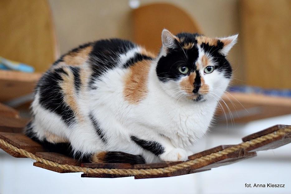 Opiekun Wirtualny: ZIENKIEWICZ LAB - VENUS to 3-letnia, pięknej urody trikolorka. Jak to jednak zwykle z trikolorkami bywa - ma swój charakterek :) Venus to silna osobowość, która doskonale wie czego chce. Nie jest agresywna, w żadnym wypadku, ale nie jest też typem przytulaka. A to sobie syknie, a to burknie pod nosem, odwróci się tyłkiem. Trochę buduje dystans między nami, jednak wydaje nam się, że zwyczajnie nie zna człowieka, jest to dla niej nowość. Choć w pełni obsługiwalna, to dotyku jakby nie znała, a co za tym - jeszcze przyjemności z niego nie czerpie. Ale kto wie co nasza piękna Venus pokaże w domu :) Póki co przy próbach głaskania, odsuwa się, ale nie dziabnie. Jest bardzo stablina emocjonalnie, świadoma. Jest też czytelnym kotem, nawet koci laik zrozumie sygnały wyraźnie wysyłane przez Venus. Kotka trafiła do nas początkiem lipca z małymi kociakami. Okazała się być fantastyczną, niezwykle opiekuńczą matką. Teraz, już wysterylizowana, szuka swojej przystani. Ta niezwykle roztropna panienka jest samodzielna, kuwetowa, spokojnie odnajdzie się w domu osoby zapracowanej, ma minimalne potrzeby ze strony człowieka. Mogłaby zamieszkać z nastoletnimi dziećmi, dogaduje się z innymi kotami. Póki co kontakt z opiekunem opiera się na zasadach Venus, ale kto wie jakie czary zadzieją się po adopcji? :) Trzymamy kciuki, by dziewczyna poznała co to prawdziwy dom, miłość i poczucie bezpieczeństwa. Zdjęcie: Anna Kleszcz Opis: Sylwia Zakierska UWAGA! Opis został sporządzony na podstawie obserwacji kota w warunkach schroniskowych. Niektóre zachowania mogą się powielać w domu, inne się ujawniać, a jeszcze inne nie powtórzyć.