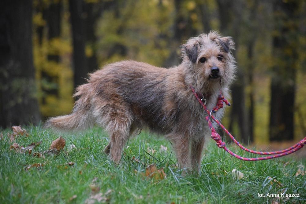 Opiekun Wirtualny: CALIGO oraz DOMINIKA WĘGLIŃSKA - DRON ma za sobą smutną historię adopcji i powrotów do schroniska. Właściwie nie ma chyba sensu się o niej rozpisywać, bo ważna jest Drona przyszłość, a nie przeszłość, której i tak nie zmienimy. Aktualnie szukamy dla chłopaka fajnego domu, z zastrzeżeniem, że muszą być to osoby doświadczone w opiece nad psami. Pewnie patrząc na tę pocieszną mordkę zastanawiacie się, skąd ten warunek? Dronik niestety nigdy nie był psem łatwym, takim miłym i wesołym, co to zaraz kupi sobie człowieka. Urodę też miał zawsze dyskusyjną: krzywe i sterczące zęby, najpierw zarośnięty tak, że nie było wiadomo gdzie tył psa, a gdzie przód, a potem po goleniu długo odrastał i również wyglądał nieciekawie, później z kolei miał nadwagę... Okres jesienno-zimowy zawsze jeszcze pogarsza aparycję Drona, bo długa, mokra i lekko kręcona sierść ekspresowo się kołtuni, a zabiegów pielęgnacyjnych jegomość nie lubi ;) Ma on jednak w tym jakiś swój urok, no i wygląd odzwierciedla idealnie jego charakter. To, co ważne, to fakt, że zrobił w schronisku ogromne postępy – jak na niego oczywiście – i z psa mało obsługiwalnego (w domu mieszkał tylko ze swoją panią, innych osób nie akceptował) przemienił się w psa, z którym nie mamy większego problemu. Wobec nas zachowuje się poprawnie, z przyjemnością spędza wspólnie czas czy to na spacerze, czy psim wybiegu, potrafi nawet się przymilić z nadzieją na smakołyki. Dronik nie wpadnie jednak w ramiona każdemu, do większości osób podchodzi neutralnie. Wybrał sobie w schronisku opiekunkę, którą darzy wielką sympatią i jej pozwala na wiele więcej :) Psiak ma po prostu problemy w kontaktach z ludźmi i zupełnie wystarcza mu jedna osoba, której i ufa i którą lubi. Ale czy jest szansa, że właśnie taka osoba stanie jeszcze na jego drodze? Zaadoptuje, zaakceptuje jego charakter? Dron ma już około 13 lat i w schronisku wyraźnie jest mu coraz trudniej. Widzimy, że jest u nas szczęśliwy i nadrabia zaległości z poprzedniego życia - uwielbia wygłupy, czasami prezentuje nam takie skoki i pozy, że nie sposób powstrzymać uśmiechu. Jednak schronisko nie jest w stanie zastąpić mu dobrego domu. Dronik dogaduje się z innymi psami i przy każdej możliwej okazji zachęca kompanów z kojca do wspólnej zabawy. Po spacerze zapoznawczym może zamieszkać z drugim psem. Zdecydowanie odradzamy go do domu z dziećmi. Zdjęcie: Anna Kleszcz Opis: Kamila Pokrzywnicka, Kamila Bartoszko, Julia Janczak UWAGA! Opis został sporządzony na podstawie obserwacji psa w warunkach schroniskowych. Niektóre zachowania mogą się powielać w domu, inne się ujawniać, a jeszcze inne nie powtórzyć.