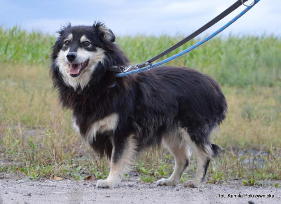 Opiekun Wirtualny: KLASA 5A ZE SZKOŁY PODSTAWOWEJ NR 24 W TORUNIU - FRIKO przyjechał do schroniska 13 lipca 2020 r. w grupie psów wyratowanych z cieszącego się koszmarną sławą schroniska w Radysach. Friko przebywał w schronisku aż do połowy sierpnia 2023 r. i ponieważ przez ten bardzo długi czas nie udało się w tych warunkach (hałas!) wypracować z nim zbyt wiele, pojechał do domu tymczasowego. Wzięliśmy chłopaka w obroty. Na początku zamieszkał w kojcu i uczył się wchodzenia, wychodzenia, zapinania smyczy i spacerowania po podwórku. Już 10 dnia pobytu poszedł na pierwszy spacer i od tego momentu nie możemy się nacieszyć jego codziennymi postępami. Chodzi na luźnej smyczy. Bardzo ładnie reaguje na nasz głos, zwłaszcza ten zachęcający. Załatwia swoje potrzeby na spacerze. Lubi węszyć. Wie, że przed jezdnią będziemy się zatrzymywać. Przestał bać się spotykanych ludzi, rowerów i ujadających psów za płotami, choć duża w tym zasługa rezydentki Misi, która od początku dawała mu najlepszy przykład. Jeszcze duże i hałaśliwe samochody powodują, że przypada do ziemi, albo przykleja się do płotu, ale przestrach jest coraz krótszy. Bardzo szybko Friko z kojca przeprowadził się do domu. On w ogóle najchętniej siedziałby tylko w domu – najpierw w swojej bazie pod łóżkiem lub w przedpokoju, teraz na własnym legowisku w naszym pokoju. Na podwórko wychodzi załatwić swoje potrzeby i potem tylko patrzy, jak znowu dostać się do mieszkania. Jednocześnie omija nas łukiem i generalnie traktuje trochę jak zło konieczne, ale dobrowolnie wybiera miejsce, gdzie jest nas najwięcej, a czasem nawet idzie za nami do drugiego pokoju i obserwuje, co robimy. Podobnie w ogrodzie, trzyma się blisko nas (dopóki na niego nie spojrzymy) i się przygląda. Z psami ma relacje bardzo neutralne, podobnie z kotami. Jak nietrudno się domyślić, po latach w schroniskach, długie futro Frika okazało się być sfilcowanym kołtunem, zwłaszcza za uszami miał zbite kule z brudu i włosów. Kilka godzin zajęło nam usunięcie tego wszystkiego (brawo dla Frika za cierpliwość i wyrozumiałość). Teraz od czasu do czasu przycinamy mu długie futro po bokach i na brzuchu, lub składamy wizyty w salonie groomerskim. Friko nauczył się sam wsiadać do samochodu, nie ma więc problemu, by z nim pojechać gdzie trzeba, a zwłaszcza pospacerować po łąkach. Friko kocha rutynę. Jeśli coś się wydarzy pod naszą nieobecność, albo jest według niego nie tak, to wtedy może mu się zdarzyć, że się w domu załatwi albo powycina zębami wzorki na naszym obuwiu (więc butów nie zostawiamy w jego zasięgu). Friko jest grzeczny u weterynarza, da się zbadać i zaszczepić, pobrać krew. Wiosną 2024 r. przeszedł sanację jamy ustnej i rutynowe badania. Friko jest według nas gotowy, by rozglądać się za domem stałym. Jest jednak psem specyficznym, trochę zagadkowym, nie można go zaszufladkować. To muszą wiedzieć jego przyszli opiekunowie i dobrze byłoby, gdyby umieli zaakceptować go takim, jakim jest. Bez zbytnich oczekiwań i starania się dopasowania psa do swoich wizji. To taki pies do obserwowania, uczenia się siebie wzajemnie, chodzenia na spokojne spacery (do centrum miasta to on się nie nadaje, zbyt wiele go by to kosztowało). Friko raczej nie usiądzie z nami na kanapie, nie przyjdzie na pogłaskanie. Ale musi mieszkać z człowiekiem w domu, bo cały czas obserwujemy, jakie to dla niego ważne. Friko urodził się prawdopodobnie w 2018 r. Waży jakieś 18 kg. Przyjmuje leki przeciwpadaczkowe (miewa rzadko delikatne ataki). Zdjęcia: Kamila Pokrzywnicka, Anna Kleszcz Opis: Kamila Pokrzywnicka (DT) UWAGA! Opis został sporządzony na podstawie obserwacji psa w warunkach schroniskowych. Niektóre zachowania mogą się powielać w domu, inne się ujawniać, a jeszcze inne nie powtórzyć.