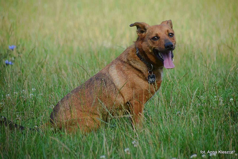 PIMPEK to rudy przystojniak, który przyjechał do schroniska jako bezpański z Kawęczyna w gminie Obrowo, w pierwszej połowie stycznia 2024 r. To młody psiak, mniej więcej 5/6-letni (październik 2025). Waży jakieś 12 kg, jest więc nieduży, ale nadrabia energią i charakterkiem! Oczywiście w warunkach schroniskowych nie ma co się dziwić, że pies jest "niewyspacerowany" i nadmiernie podekscytowany, ale trzeba przyznać, że Pimpuś wyjątkowo jest ukierunkowany na intensywny marsz na smyczy ;) Kiedy się wreszcie na chwilkę zatrzymamy, bacznie rozgląda się po okolicy i gdy coś go zainteresuje, daje temu wyraz pięknym i dostojnym szczekaniem ;) Nie reaguje na podchodzących obcych, za to pobudzają go inne psy, mimo, że kojec dzieli z kilkoma i to zgodnie. Pimpek chętnie się do nas poprzytula, ale na własnych zasadach. Wchodzi na kolana, ładuje się pod pachę, nawet buziaki daje, oczywiście wtedy kiedy ma na to ochotę i kiedy z naszej strony nie ma żadnego ciśnienia na te pieszczoty. W kojcu Pimpek jest pierwszy do człowieka, nieważne czy przyszliśmy wymienić wodę w miskach czy może dołożyć świeżej słomy do budy, Pimpek zawsze kręci się przy nas i albo chwali się jakąś zabawką, albo po prostu sam w sobie szuka uwagi i wolnej ręki do głaskania :) Mimo wszystko, ze względu na jego granice, raczej nie polecamy go do domu z małymi dziećmi. Pimpek świetnie dogaduje się ze swoimi kumplami z boksu. Puszczony luzem na wybiegu biega z nimi jak szalony, zwiedza cały teren, ale też dużo węszy, buszuje w trawkach. Głośno i stanowczo komunikuje, jeśli ktoś zbliża się zza ogrodzenia. No i co najbardziej lubi, to tarzanko w trawie. Szczególnie jeśli jakiś śmierdzący zapach przyciągnie uwagę jego nosa :) Pimpek to prawdziwy kundelek, ale mega pocieszny i kochany. Oczywiście nie pluszak, a pies, który ma "swoje zdanie" i trzeba je szanować. Zdjęcie: Anna Kleszcz Opis: Kamila Pokrzywnicka , Anna Kleszcz, Julia Janczak UWAGA! Opis został sporządzony na podstawie obserwacji psa w warunkach schroniskowych. Niektóre zachowania mogą się powielać w domu, inne się ujawniać, a jeszcze inne nie powtórzyć.