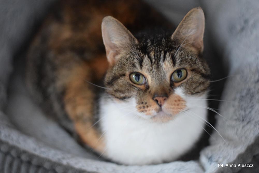 Opiekun Wirtualny: ANNA Z BOLESŁAWCA - IWI to kotka w wieku mniej więcej 7 lat, która trafiła do naszego schroniska w tragicznym stanie – wychudzona, zabiedzona i wyczerpana. Przez długi czas błąkała się po jednej z podtoruńskich wsi, gdzie niestety nikt nie zwrócił na nią uwagi, dopóki nie zdarzył się incydent z dzieckiem. To właśnie ten moment skłonił kogoś do zgłoszenia jej do nas. Iwi ma bardzo silny charakter. Jest uparta, chimeryczna i potrafi łatwo się zdenerwować. W trakcie jedzenia nie znosi żadnych przeszkód – to zupełnie naturalne, biorąc pod uwagę jej trudną przeszłość. Dzieci zdecydowanie nie są jej ulubieńcami, a dorosłych traktuje z rezerwą. Jej zachowanie u weterynarza jest równie nieuprzejme, jak i w innych sytuacjach – nie lubi, gdy ktoś próbuje jej cokolwiek narzucić ;) To kotka, która bardzo ceni swój spokój i rutynę. W schronisku Iwi ma niełatwe życie, bo nie potrafi znieść towarzystwa innych kotów. Zamiast na kociarni, zamieszkała w jednym z naszych kameralnych pomieszczeń, gdzie jest tylko kilka innych kotów, ale nadal nie jest zachwycona swoją sytuacją. Jest to kotka samotniczka, która najbardziej komfortowo czuje się w ciszy i spokoju. W swoim pokoju ma ustawiony własny kennel, w którym chowa się, kiedy chce być sama – wszystkie koty szanują jej przestrzeń :) Mimo swojego trudnego charakteru, Iwi to kotka mądra, z pewnym urokiem, choć na pewno nie jest łatwa w adopcji. Wzorowo zachowuje czystość i, mimo, że nie szuka intensywnego kontaktu, potrafi miło zagadać do opiekuna, gdy ma na to ochotę :P Iwi jest też wyjątkowo piękna i pełna gracji. Kochająca swoją przestrzeń, wymagająca stabilności i rutyny, Iwi z pewnością odnajdzie swoje miejsce u osoby, która doceni jej niezależność i będzie w stanie zaakceptować jej trudny charakter. To kotka, która nie będzie się nadmiernie domagała pieszczot, ale jeśli jej zaufać, potrafi okazać ciepło na swój sposób. Iwi potrzebuje domu, który zrozumie jej potrzeby – dom spokojny, pełen zrozumienia i cierpliwości. Zdjęcie: Anna Kleszcz Opis: Hortensja UWAGA! Opis został sporządzony na podstawie obserwacji kota w warunkach schroniskowych. Niektóre zachowania mogą się powielać w domu, inne mogą się ujawniać, a jeszcze inne nie powtórzyć.
