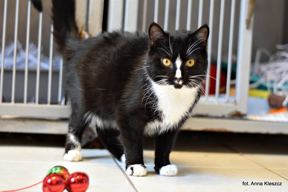 COLA to kot tak słodki i przyciągający, jak jej gazowana imienniczka. Cola jest malutka i młodziutka - ma około 6 miesięcy. Jak to koci podlotek, jest radosna i pełna życia. Do schroniska trafiła w szelkach, ale niestety nikt się po nią nie zgłosił. Zakładamy zatem, że kot umie chodzić w szelkach. Oprócz tego w skład rzeczy, które umie, wchodzą: opanowanie kuwety, kulturalna zabawa, uprzejmość wobec innych kotów i ludzi oraz opanowanie tabliczki mnożenia do 10 – choć tu mamy pewne wątpliwości ;) A tak serio, to wspaniały, mądry, kontaktowy i wesoły kociak, nadający się do życia z każdym, kto będzie chciał budować wspólną, aktywną relację. Cola byłaby świetnym towarzystwem dla innego kota, który potrzebuje wsparcia lub dobrego przykładu do budowania więzi z opiekunem. Sprawdziłaby się również w sytuacjach, kiedy zwierzę rezydent cierpi po utracie towarzysza lub inne młode stworzenie nudzi się i potrzebuje towarzystwa do wspólnego spędzania czasu, na czynnościach innych niż np. kreatywne porządki w domu, eksperymenty z wodą i szkłem, itd. Cola łączy w sobie kocią ciekawość i energię z ogarnięciem kota, który już wie i umie co powinien, żeby mieszkać z nim bezproblemowo. Czyż to nie koci ideał? :) Zdjęcie: Anna Kleszcz Opis: Hortensja UWAGA! Opis został sporządzony na podstawie obserwacji kota w warunkach schroniskowych. Niektóre zachowania mogą się powielać w domu, inne mogą się ujawniać, a jeszcze inne nie powtórzyć.