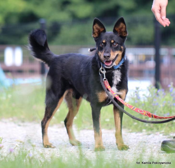 DEZERTER biegał przez kilka dni bezpańsko po toruńskim osiedlu Bielawy, w końcu udało się go odłowić przy ul. Nad Strugą, pod koniec kwietnia 2025 r. Psinek waży ok. 12 kg, może mieć jakieś 8 lat. Urody jest niepozornej, ale ma w sobie coś tak sympatycznego, że cieszy nas perspektywa poznania Dezerterka i wspólnego spaceru. Bo jak się okazuje, Dezerter bardzo chętnie rusza z nami do parku, nie ma obaw przed nowym miejscem. Troszkę onieśmiela go obiektyw aparatu, nie ma parcia na szkło. Woli poskubać sobie trawkę, powąchać krzaczki, wskoczyć na murek. Nie jest nachalny, odpowiada mu delikatne głaskanie. Na smyczy radzi sobie bardzo dobrze. Dezerter jest psem niedowidzącym, ale absolutnie nie przeszkadza mu to w normalnym funkcjonowaniu. Podziwiamy go wręcz jak sobie świetnie radzi puszczony luzem na wybiegu. Ma tyle energii i biega szybko niczym Formuła 1, wpadając w zakręty i wiraże. Jak dobrze widzieć tak radosnego psa... :) Ma również świetny kontakt z psami. Zaczepia je do zbawny i do wspólnego ganiania. Co do jego patrzenia na świat, możliwe, że na lewe oko jest bardziej niedowidzący. Widać to nawet na zdjęciach, że inaczej gałka oczna odbija światło. Będziemy konsultowali Dezertera u psiego okulisty. Zdjęcie: Kamila Pokrzywnicka Opis: Kamila Pokrzywnicka, Anna Kleszcz UWAGA! Opis został sporządzony na podstawie obserwacji psa w warunkach schroniskowych. Niektóre zachowania mogą się powielać w domu, inne mogą się ujawniać, a jeszcze inne nie powtórzyć.