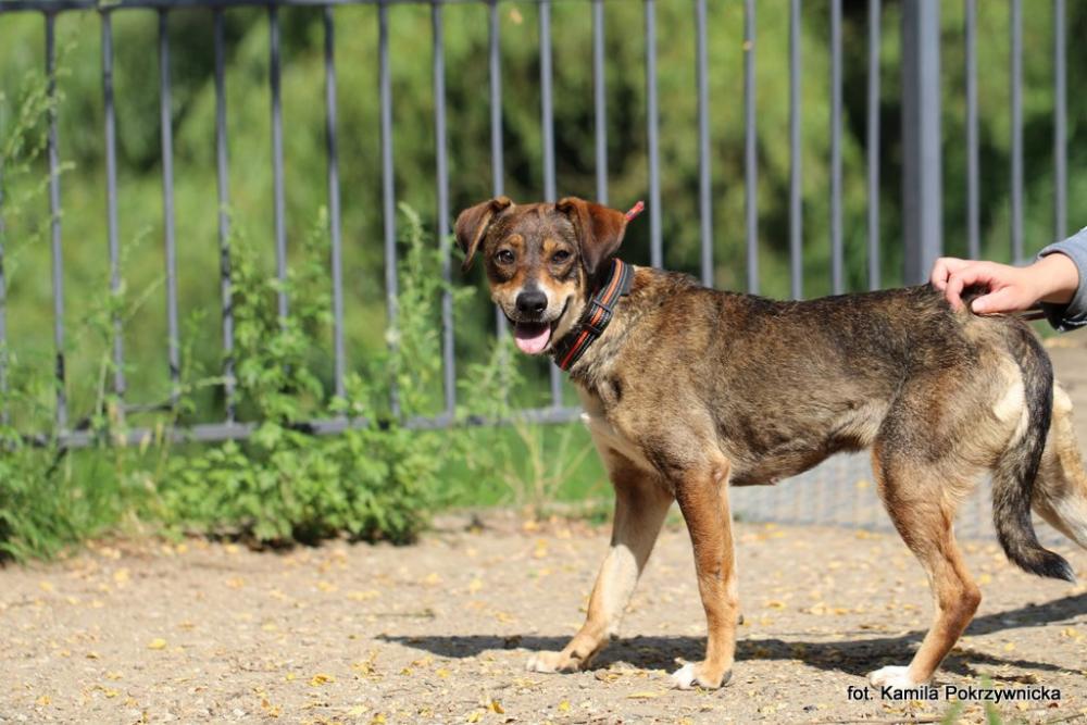 SUSAN trafiła do schroniska w drugiej połowie kwietnia 2025 r. spod Lipna. Po zmarłym właścicielu, na posesji pozostały dwie suczki i szczenięta. Susan była po ciąży. Jest psem z bardzo dużymi brakami socjalizacyjnymi i jest nad czym popracować. Gdy się poznaliśmy, Susan odmawiała jakiejkolwiek współpracy z opiekunem, ze strachu kuliła się i sztywniała. W chwili, gdy robiliśmy jej pierwsze zdjęcia, Susan oswajała się z wybiegiem. Bardzo nam zależało, żeby po tygodniach spędzonych w kojcu rozprostowała łapki, zażyła słońca i świeżego powietrza. Trochę się udało. Minęło kilka miesięcy pobytu Susan w schronisku i jesteśmy naprawdę z niej mega dumni. Dziewczyna śmiga na spacery do parku, aż miło patrzeć. Bez problemu chodzi na smyczy. Jest radosna, nadal troszkę nieśmiała, ale taka wdzięczna. Już nie trzeba wynosić jej z boksu na rękach. Bardzo dobrze wie do czego służą jej 4 łapki. Najlepiej można się o tym przekonać, jak puszczona luzem na wybiegu pędzi niczym wyścigówka! Szybka, zwinna, sprytna i uśmiechnięta Susan... :) Nawet ciężko uchwycić ją w biegu, taka szybkość psa. Takowe widoki oczywiście bardzo nas cieszą. Jesteśmy pełni podziwu naszej psiny, że zrobiła tak ogromne postępy socjalizacyjne. Na głaski sunia też chętnie do nas przybiega, próbuje również bawić się pluszakami. Jest w tym naprawdę pocieszna. W schroniskowym kojcu Susan najpierw mieszkała sama, później z drugim psem, obecnie w licznym boksie. Przydał jej się dobry wzór do naśladowania, widać, że przy innych psiakach Susan rozkwitła. Miło byłoby, żeby w nowym domu drugi pies też był wsparciem. Susan ma dopiero ok. 2 lat, waży ok. 14 kg. Wiele dobrego może jeszcze być przed nią. Zdjęcie: Kamila Pokrzywnicka Opis: Kamila Pokrzywnicka, Anna Kleszcz UWAGA! Opis został sporządzony na podstawie obserwacji psa w warunkach schroniskowych. Niektóre zachowania mogą się powielać w domu, inne mogą się ujawniać, a jeszcze inne nie powtórzyć.