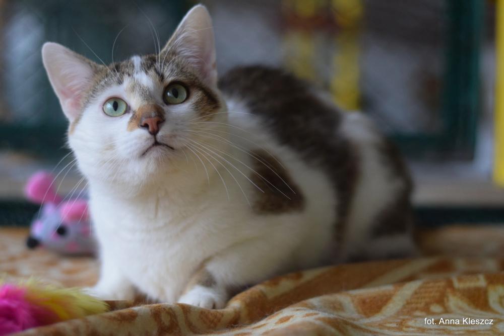 MERLIN to kocurek, który od razu przyciąga wzrok odwiedzających, ponieważ wyglądem wyróżnia się na tle innych kotów. Ma około 2 lata, więc nie dość, że piękny, to jeszcze młody, a i z charakteru to całkiem sympatyczny kot! Merlin został znaleziony jako kotek bezpański, na początku maja 2025. Od początku nie miał większych problemów z człowiekiem. Teraz to wręcz kocha ludzi, zawsze przyjdzie się przywitać. Ma swoje ulubione miejsca na głaskanie (po główce, pupce i karku), ale jak każdy, ma swoje limity :D Jeśli chodzi o inne zwierzaki - niestety lubi czasami zaczepiać pozostałe koty. Potrafi być zazdrośnikiem, więc dobrym rozwiązaniem byłby dom bez innych zwierząt. Do zabawy trzeba go często zachęcić, ale nie jest też tak, że jej nie lubi :) Zdjęcie: Anna Kleszcz Opis: Julia UWAGA! Opis został sporządzony na podstawie obserwacji kota w warunkach schroniskowych. Niektóre zachowania mogą się powielać w domu, inne się ujawniać, a jeszcze inne nie powtórzyć.