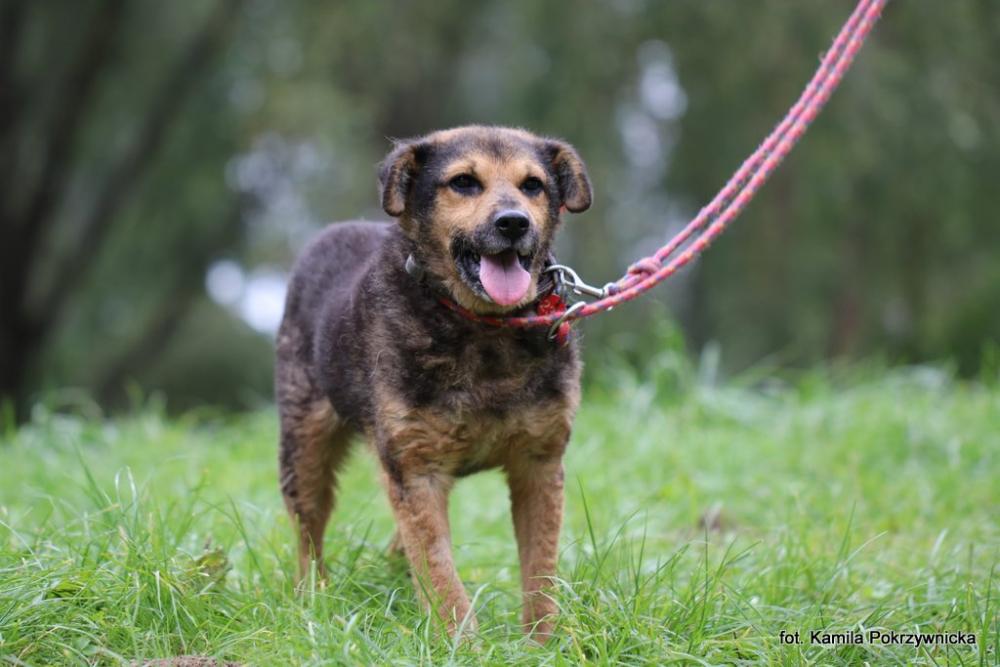 FERDEK przyjechał do schroniska w pierwszej połowie lipca 2025 r., z terenu gminy Lipno, a konkretnie z Kłokocka, gdzie biegał bezpańsko. Może mieć ok. 8 lat. Trafił mocno zaniedbany, szczególnie sierść. I tu snujemy domysły, że chyba był psem podwórkowym... Teraz jest już po kąpieli i od razu prezentuje się lepiej. W diagnostyce wyszła rozregulowana tarczyca, to też miało wpływ na sierść. Podkreślamy, że to niezwykle cierpliwy pies: długie i intensywne czesanie, a potem kąpiel, a on nawet uchem nie poruszył, by zaprotestować, rozpływał się z zadowolenia. Ferdek jest bardzo mocno ukierunkowany na człowieka, oj aż czasem za mocno ;) Ma piękny głos, którym do nas po psiemu przemawia. Spacery lubi, ale musimy mu fundować umiarkowane dystanse, bo coś tam te tylne łapki nie najmocniejsze. W kojcu mieszka z drugim psem i jest dla niego wsparciem, daje mu dobry przykład jak współdziałać z opiekunem. Ferdek waży ok. 14kg, może nie najmniej, ale na kolana się zmieści i będzie szczęśliwy :) Zdjęcie i opis: Kamila Pokrzywnicka UWAGA! Opis został sporządzony na podstawie obserwacji psa w warunkach schroniskowych. Niektóre zachowania mogą się powielać w domu, inne mogą się ujawniać, a jeszcze inne nie powtórzyć.