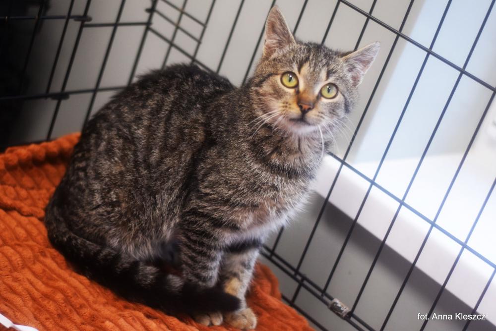 Kocurek poz. 25/887/KKURO to około 7/8-miesięczny kocurek, który na co dzień spędza czas na swoim legowisku, obserwując otoczenie z lekkim dystansem. Jest spokojny, łagodny i całkowicie nieagresywny w kontakcie z człowiekiem, a jednocześnie widać w nim ogromną ciekawość i pragnienie bliskości. Wysta...Więcej