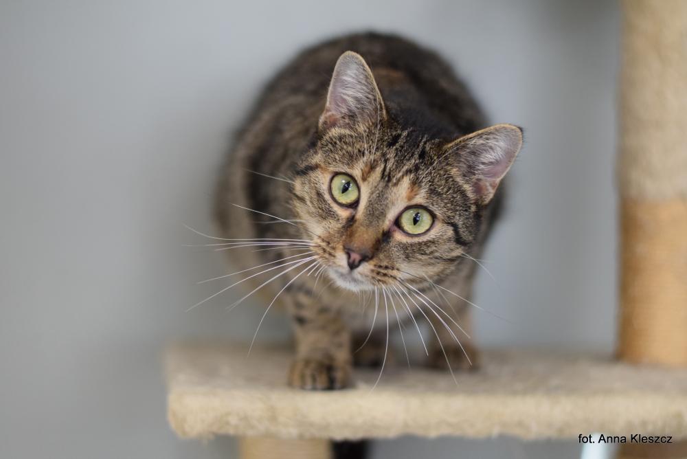 CARRIE to ok. 2-letnia kotka, która posiada charakter, obok którego nie da się przejść obojętnie. Jest trochę "inna", ale właśnie to sprawia, że ma w sobie tyle uroku. To kotka pełna energii, pomysłów i radości życia, która kocha być w centrum domowych wydarzeń. Człowiek to dla niej najlepsza zabawka i towarzysz. Carrie uwielbia interakcj, zawsze musi być blisko i chętnie "pomaga" w porządkach, dzielnie polując na miotłę i mopa :D Nuda w jej towarzystwie po prostu nie istnieje. Ma jednak jedną ważną cechę, o której trzeba wiedzieć - Carrie bardzo szybko się przebodźcowuje. Czasem wystarczy odrobina za dużo wrażeń i wtedy jasno pokazuje, że potrzebuje przerwy, łapiąc rękę ząbkami. Nie robi tego ze złości, raczej z nadmiaru emocji. Dlatego najlepiej odnajdzie się w domu bez małych dzieci, idealnie z dziećmi powyżej 10 roku życia lub z dorosłymi, którzy uszanują jej granice. Z innymi kotami dogaduje się świetnie! Z młodszymi chętnie urządza gonitwy, a dorosłym daje przestrzeń i spokój. Jej absolutną miłością są wędki, szczególnie te z piórkami, przy których potrafi zapomnieć o całym świecie. Carrie to kotka dla kogoś, kto szuka żywego, angażującego towarzysza i nie boi się charakteru. W zamian dostaje się mnóstwo radości, śmiechu i codziennej energii w najczystszej kociej postaci :) Zdjęcie: Anna Kleszcz Opis: Wanessa Eichhorst UWAGA! Opis został sporządzony na podstawie obserwacji kota w warunkach schroniskowych. Niektóre zachowania mogą się powielać w domu, inne mogą się ujawniać, a jeszcze inne nie powtórzyć.